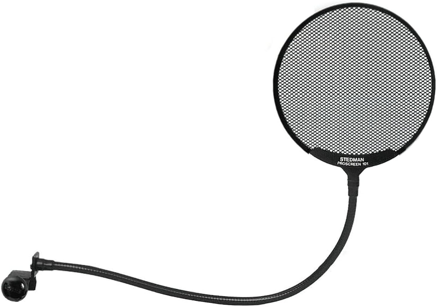 The Stedman PS101 eliminates bursts without high frequency loss with its durable, patented, metal screen and 13-inch heavy-duty adjustable gooseneck It's made in the USA and comes with a lifetime warranty. It's sturdy and long-lasting, too...I've had mine for about 12 years now. (The same Stedman metal screen pop filter is also available in a desktop version: the Stedman DT101.)