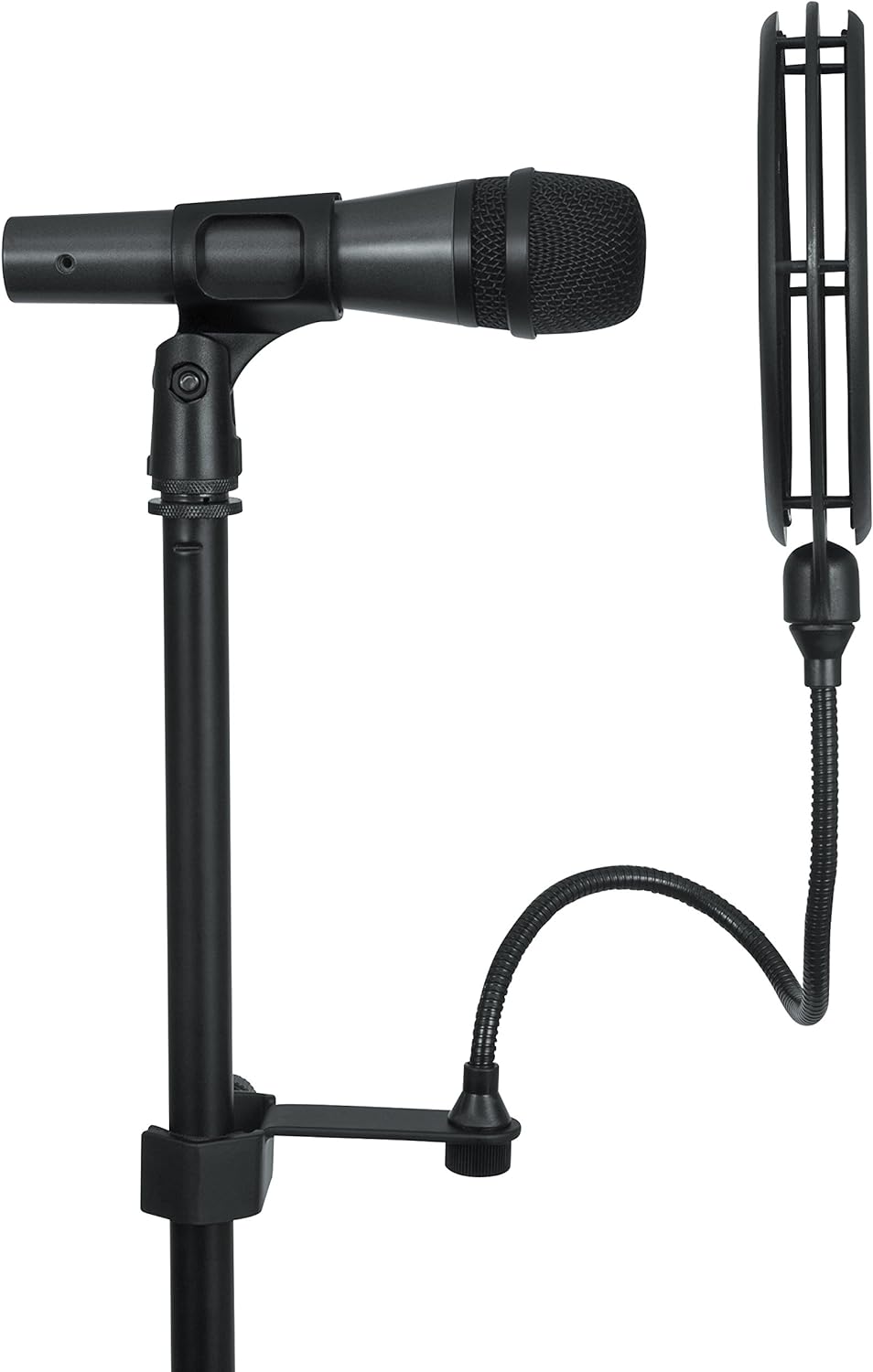 6-inch double layered, split level, nylon screen pop filter with an 11.5-inch gooseneck. (C-clamp will fit most standard microphone stands.)